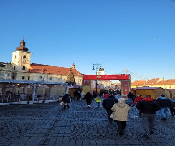 Nach einem sehr schmackhaften Mittagessen im Kinderheim geht unsere Fahrt weiter nach Sibiu / Hermannstadt. Der Nachmittag ist frei und wird zum Spaziergang, Einkauf oder Bummel über den Weihnachtsmarkt genutzt. Zum Abendessen treffen wir uns mit Dr. Lux, dem Leiter der Reha Einrichtung für Suchtgefahren „Blaues Kreuz“ und seiner Frau in einer Gaststätte und verbringen einen schönen Abend.