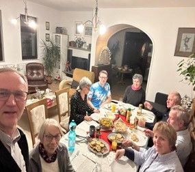 Sonntag, 31.012.23 - wir werden zum ungarischsprachigen Gottesdienst eingeladen, der für uns per Kopfhörer übersetzt wird. Anschließend besuchen wir noch Bewohner einer Behinderteneinrichtung. Im Gepäck haben wir kleine Geschenktüten, die voller Freude und Dankbarkeit entgegengenommen werden. Bedrückend manches Schicksal, wie das einer jungen Frau, die durch einen Unfall zum Pflegefall wurde und nun total ans Bett gebunden ist. Bewundernswert, wie liebevoll das Pflegepersonal die Bewohner betreut.